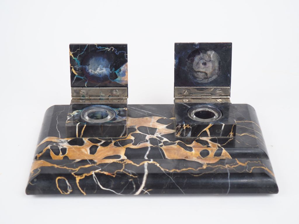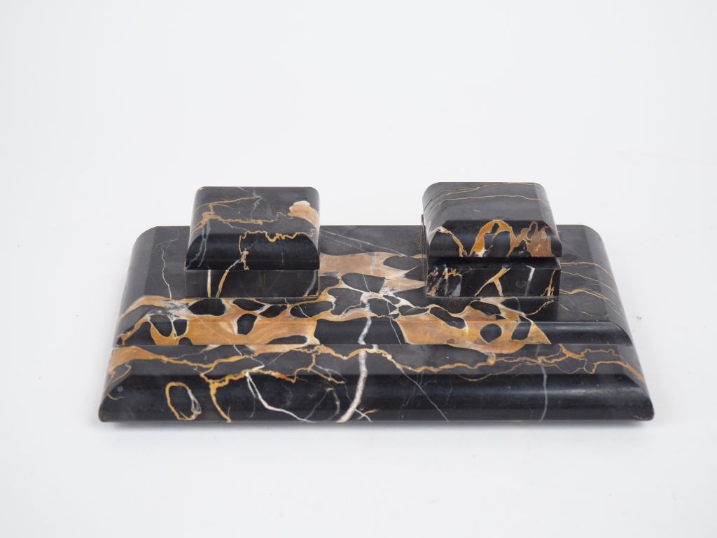 Lot de Encrier Art Déco en marbre portor. Dim. 7 x 24 x 15 cm au prix de 40 à 60 € en vente aux enchères par l'hôtel des ventes Primardeco