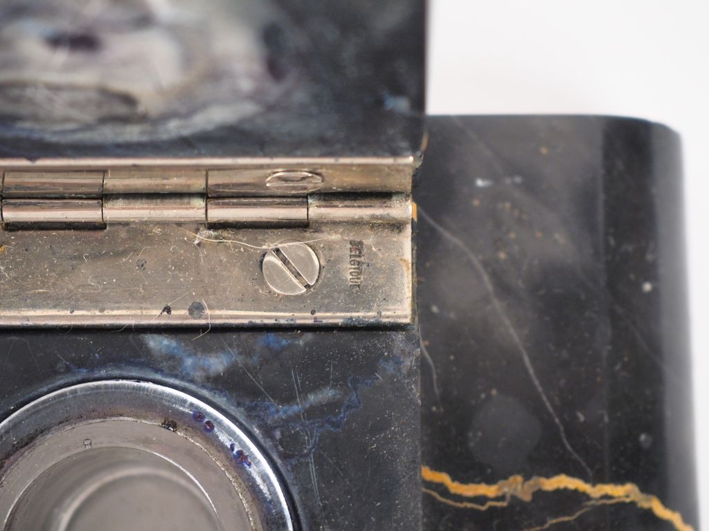 Encrier Art Déco en marbre portor. Dim. 7 x 24 x 15 cm