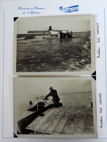 Ensemble de 17 photographies 'Portraits de pilotes' et 'Avions' dont Farman, Geo Chemet, Legagneux, Renaux et divers sujets