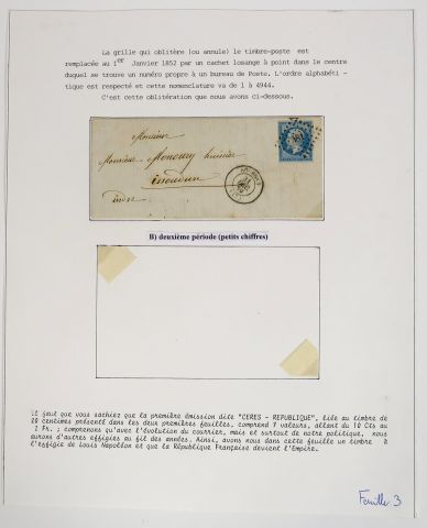Ensemble de 8 plis datés de 1849 à 1876 relatant les débuts de l'oblitération du timbre poste , on y joint un exemplaire du bulletin des lois de 1887 concernant la création du bureau de poste de Toulouse , 2 plis 'acheminés Venise Toulouse via Marseille