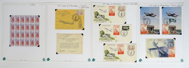Ensemble d'enveloppes, timbres, cartes postales et documents divers concernant Toulouse, autographe de André Turcat