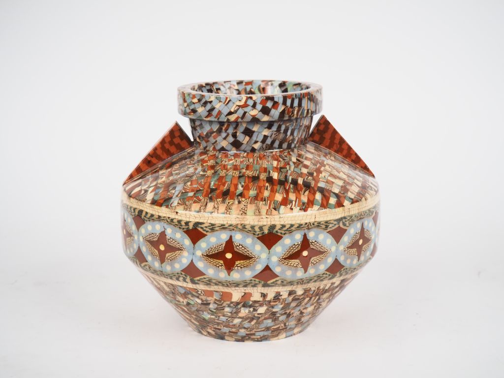 GERBINO. Vase Art Déco en céramique polychrome à décor de motifs géométriques. Signé. H. 20 cm.