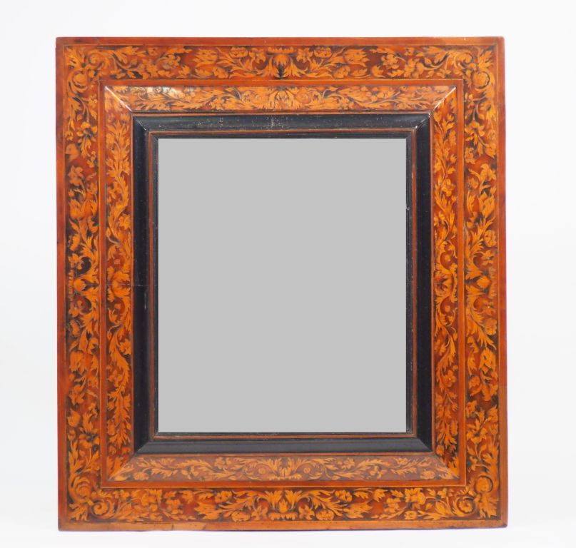 Glace languedocienne XVIIème en marqueterie, à décor de feuillage et de fleurs. Dim. 94 x 85 cm (petits accidents)