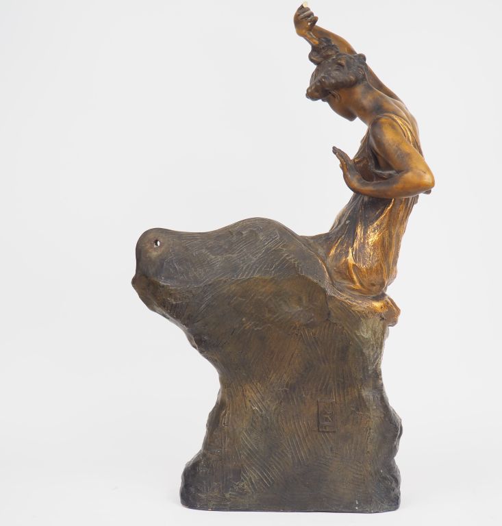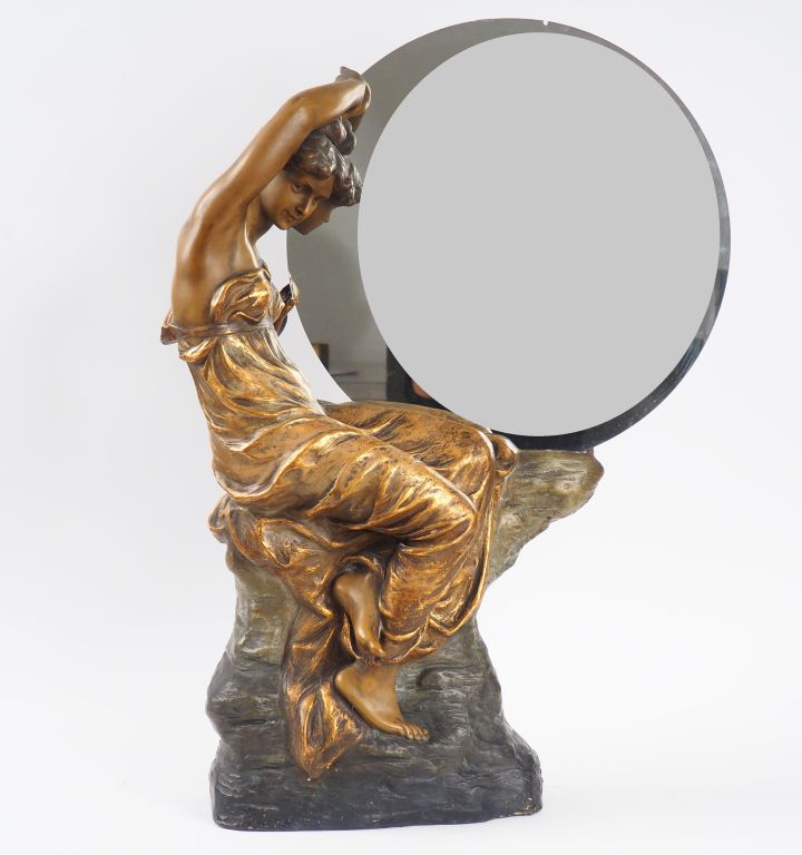 GOLDSCHEIDER. "Jeune baigneuse". Miroir de toilette. Signé. Dim: 70 x 42 x 20 cm. (Accident à deux des doigts).