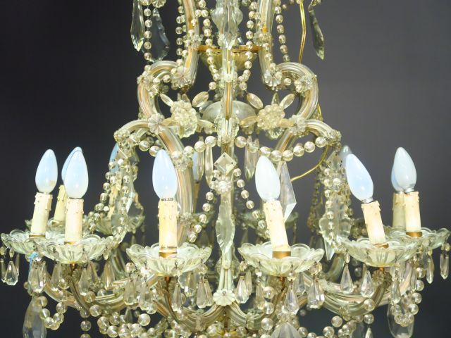 Lot de Grand lustre en cristal éclairant à 12 lumières (petits accidents) au prix de 400 à 600 € en vente aux enchères par l'hôtel des ventes Primardeco