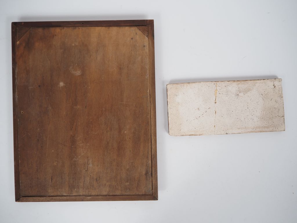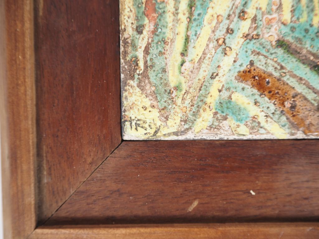 Henri Paul REY. "Abstraction" Deux plaques en terre cuite émaillée polychrome Signées. Dim 22 x 15,5 cm et 10 x 22 cm (fel à l'une des plaques)