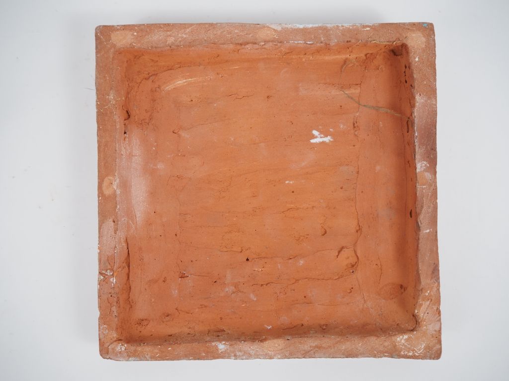 Henri Paul REY. "Paysanne dansant et son chevreau" Plaque en terre cuite émaillée polychrome Signée. Dim 22,5 x 22,5 cm