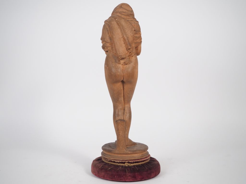 HOUDON (d'après). "L'hiver". Sculpture en terre cuite d'édition, sur un socle gainé de velours. Signée. H. 47,5 cm.