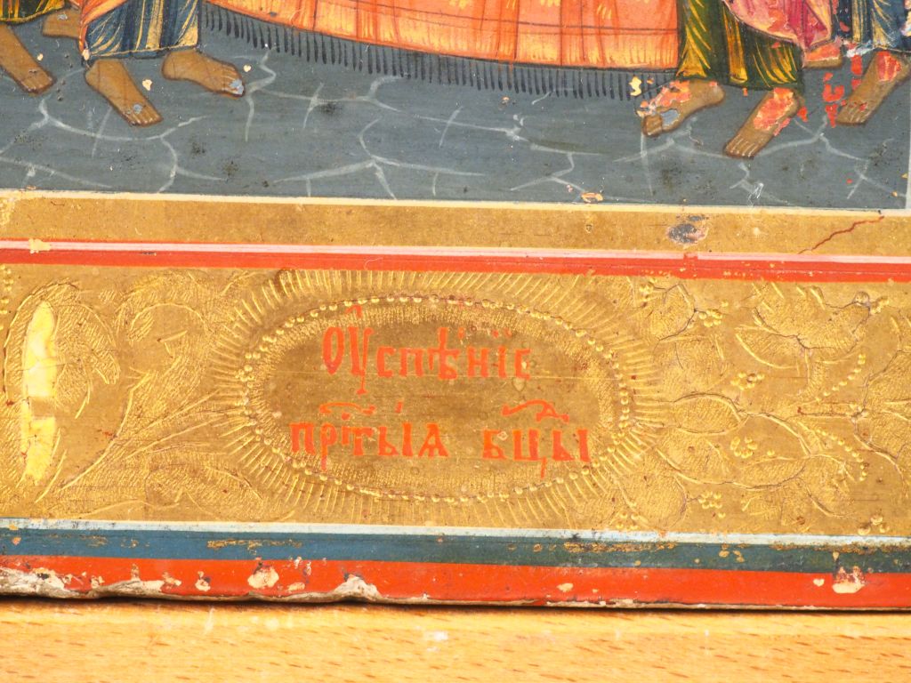 Icône de la Résurrection et des douze fêtes principales de l'Orthodoxie. Seconde moitié du XIXe siècle. L'icône de la Descente aux enfers et de la Résurrection occupe la partie centrale de la moitié supérieure, avec de part et d'autre quatre vignettes représentant : la Nativité de la Marie, la Présentation au Temple de Marie, l'Annonciation, la Nativité de Jésus. La moitié inférieure comprend deux rangés de quatre vignettes chacune représentant : la Présentation au Temple de Jésus, le Baptême du Christ, l'Entrée à Jérusalem, la Transfiguration, la Pentecôte, la Trinité d'Abraham, la Dormition de la Vierge et l'Élévation de la Croix. Tempera sur bois à fond or. Dim. 44 x 34 cm Expert : Nicolas FILATOFF