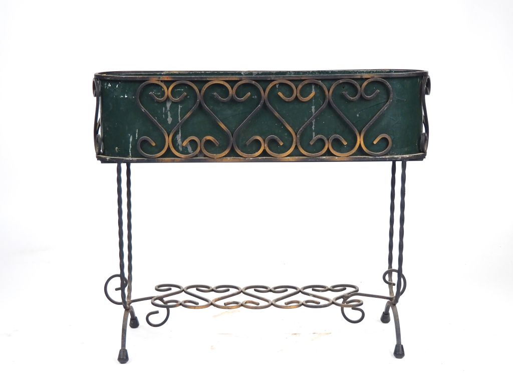Jardinière 1950 en fer forgé à décor ajouré de consoles. Dim. 62 x 74 x 21 cm