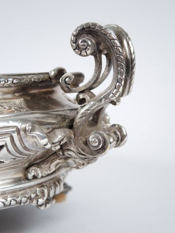 Jardinière Napoléon III de style Louis XV en bronze argenté à décor de masques, de cartouches, de coquilles et de feuillage. Maison Boudet, Boulevard des Capucines à Paris