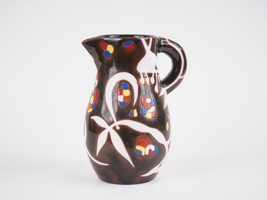 Jean LURÇAT. Pour Sant Vicens. Pichet en céramique polychrome, numéroté 37/100. Signé H. 24 cm
