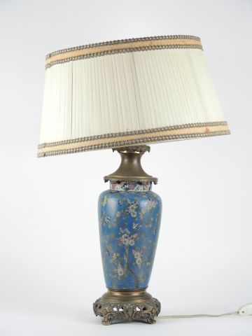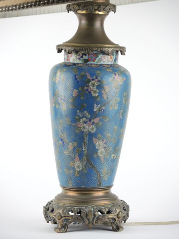 Lampe de style Extrême-Orient en bronze et émail cloisonné, à décor de fleurs polychromes