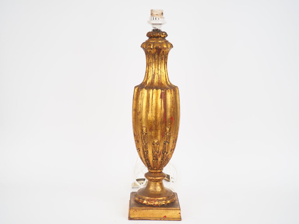Lampe en bois sculpté et doré en forme de balustre cannelé et rudenté. H. : 59 cm