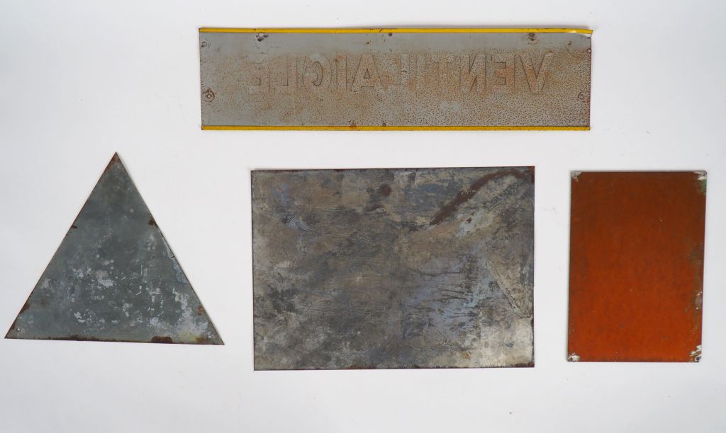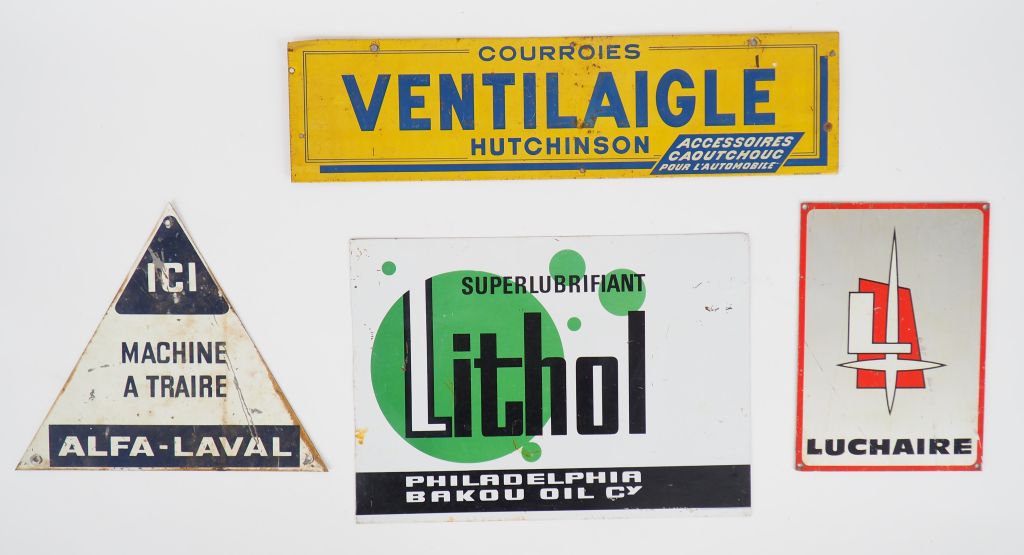 Lot de quatre en tôles lithographiés : Lithol superlubrifiant Alfa Laval Machine à traire Luchaire Ventilaigle