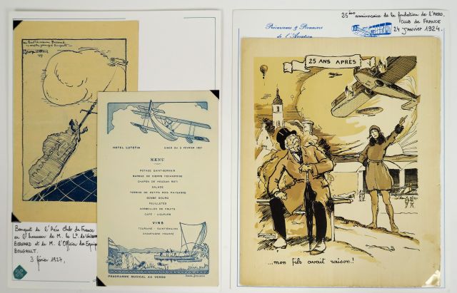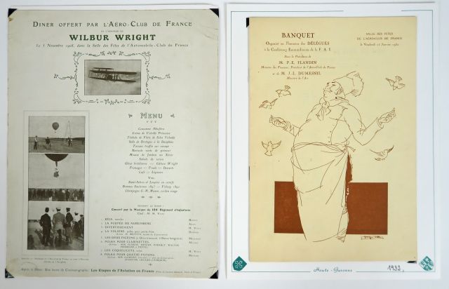 Menus '100 ans d'aviation et de banquets'. Collection de 23 menus de 1891 à 1991