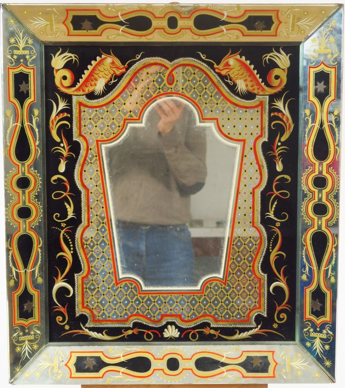 Lot de Miroir 1950 en verre églomisé. Dim. 63 x 55 cm au prix de 150 à 250 € en vente aux enchères par l'hôtel des ventes Primardeco