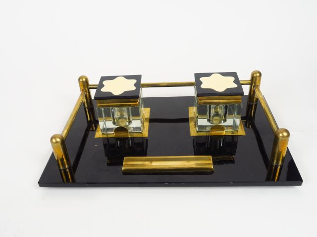 MONTBLANC. Encrier en bakélite, laiton et ivoire.