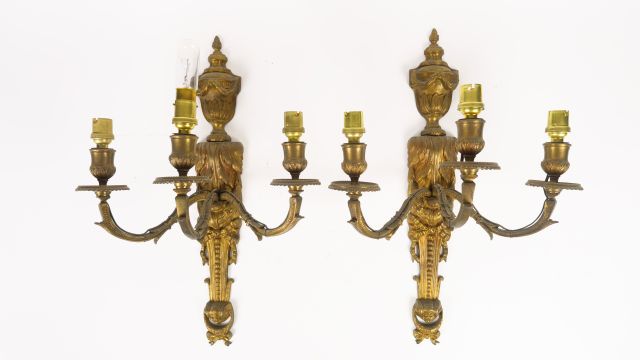 Lot de Paire d'appliques de style Louis XVI en bronze, éclairant à trois lumi au prix de 100 à 150 € en vente aux enchères par l'hôtel des ventes Primardeco