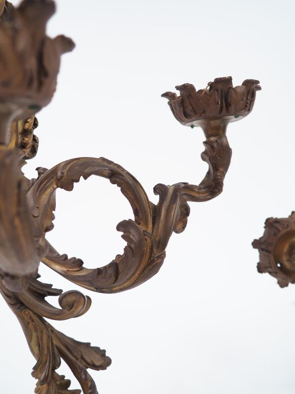 Paire d'appliques doubles en bronze de style Louis XV éclairant à deux lumières, à décor de feuillage. Dim. 48 x 30 cm