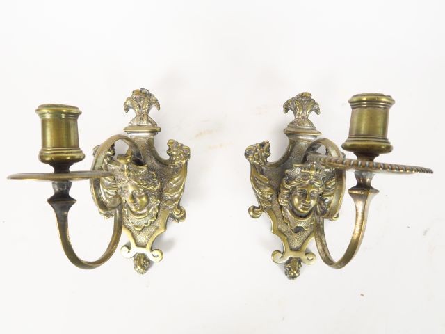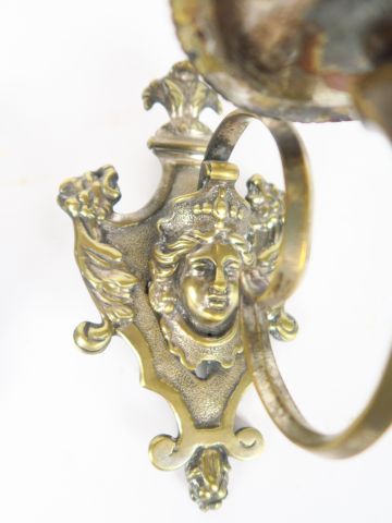 Paire d'appliques XVIIIème en bronze à décor de visage de jeune fille H. 19 cm