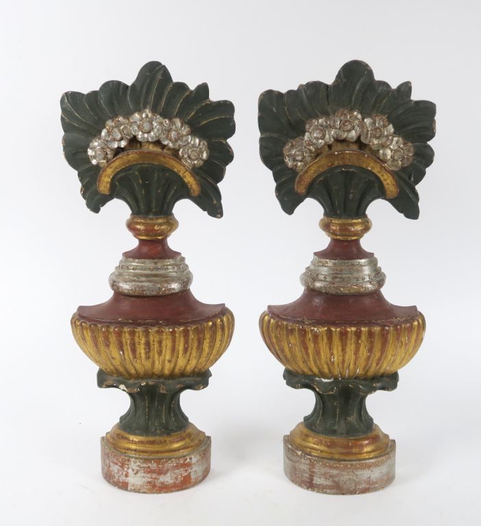 Paire de bois polychromes XIXème "Vases de fleurs". H. 56,5 cm (quelques sauts de peinture)
