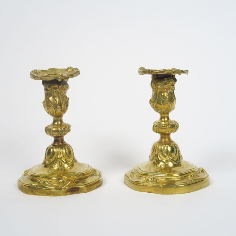 Lot de Paire de bougeoirs de toilette Louis XV en bronze doré. H. : 14 cm. au prix de 60 à 80 € en vente aux enchères par l'hôtel des ventes Primardeco