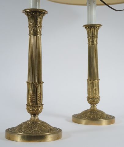 Lot de Paire de chandeliers Restauration, montés en lampe au prix de 60 à 80 € en vente aux enchères par l'hôtel des ventes Primardeco