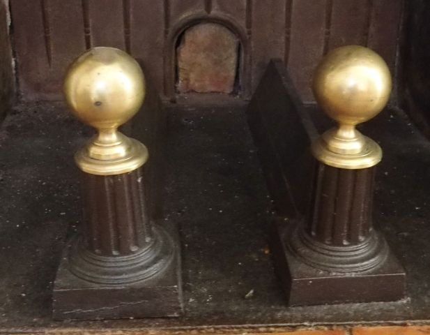 Paire de chenets XIXe en fonte et bronze
