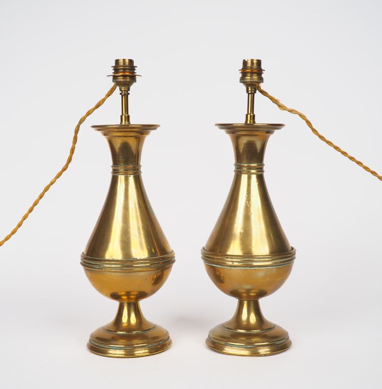 Paire de vases balustre en bronze montés en lampe. H. 28 cm