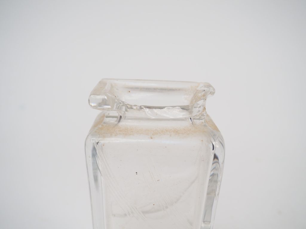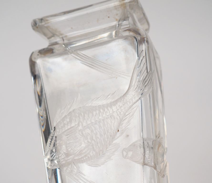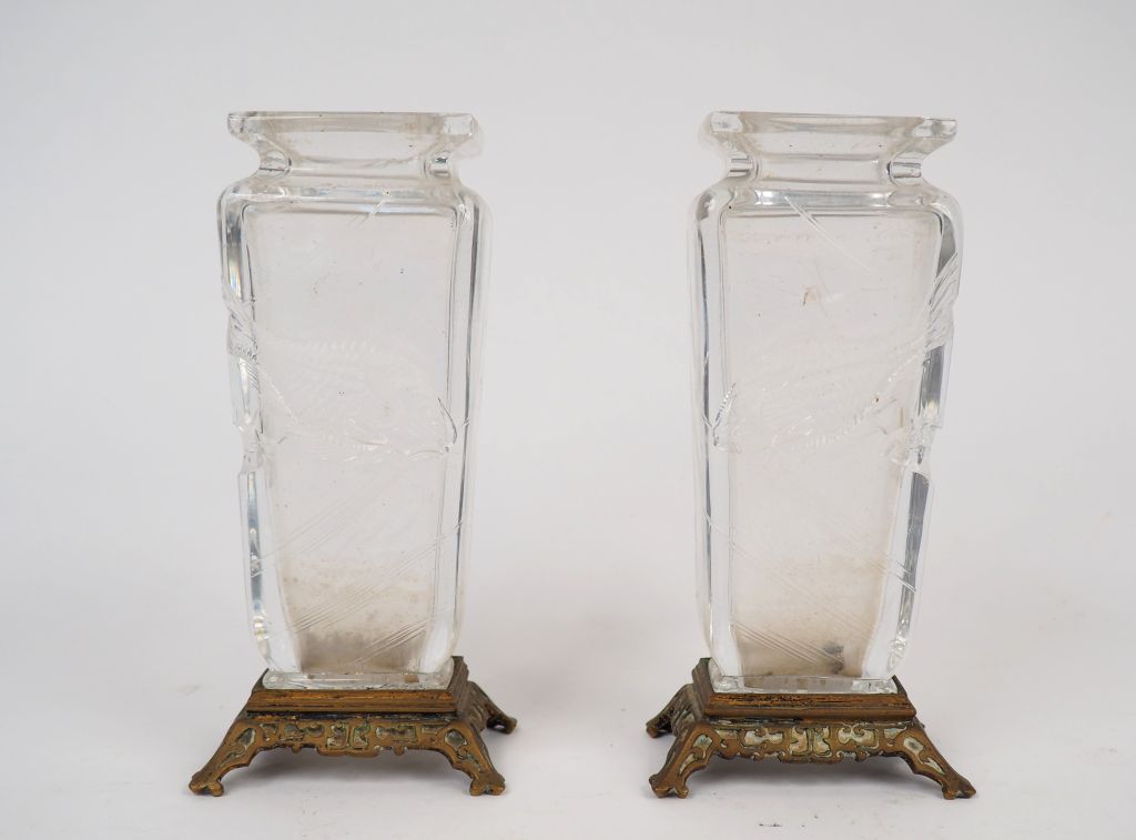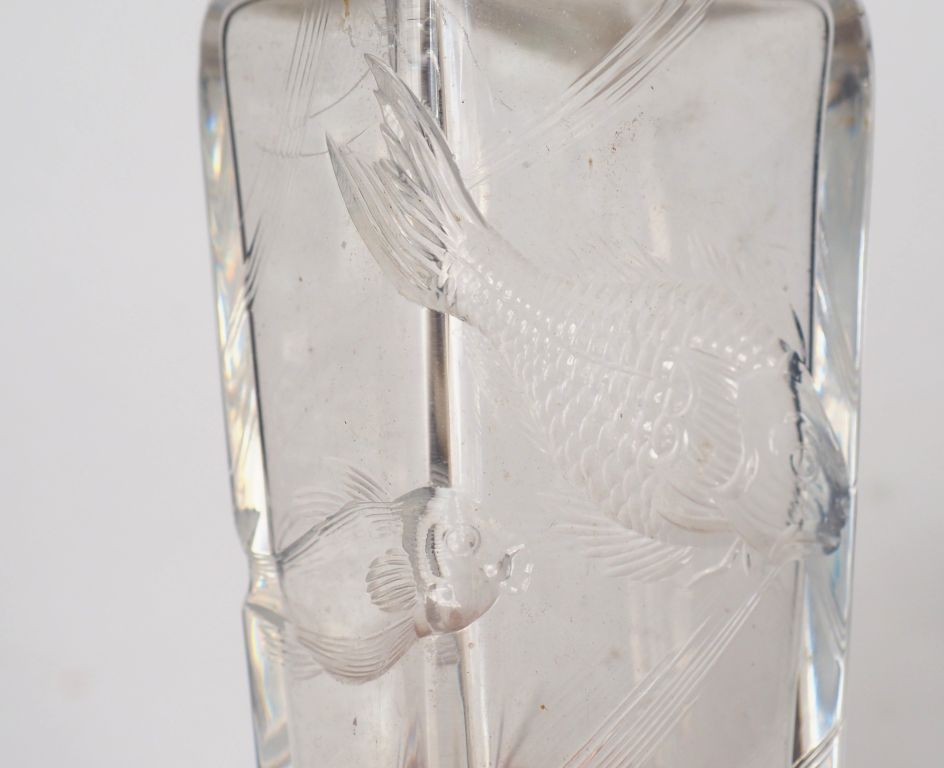 Paire de vases en cristal, à décor gravé de poissons. H. 15 cm (mauvais état pour l’un)