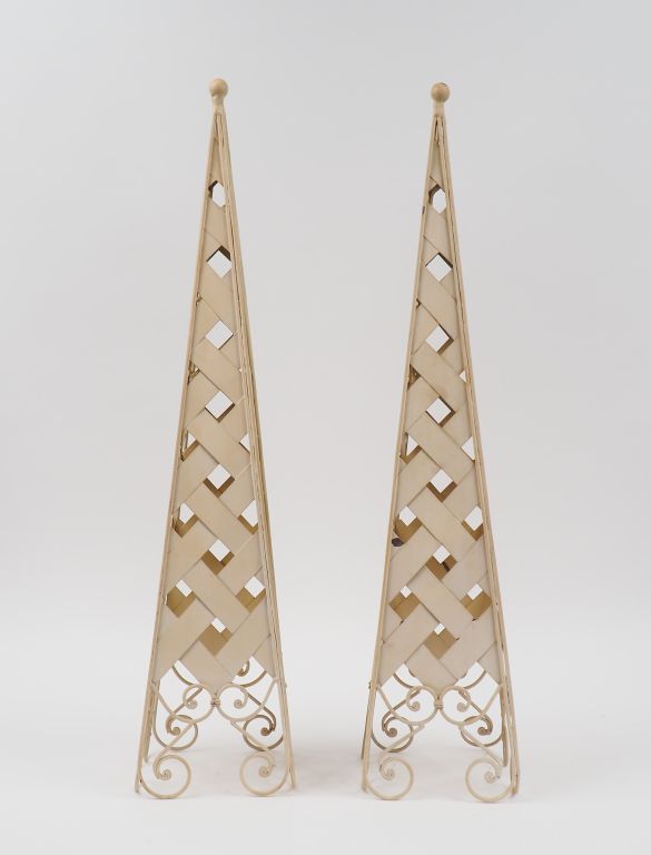 Paire d'obélisques en tôle peinte, travail du Xxe siècle. H. : 78 cm.