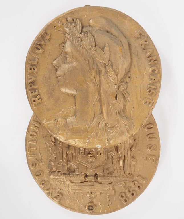 Plaque en bois doré "Exposition de Toulouse 1898".