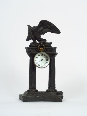 Porte-montre et montre loupe fin XIXème en bronze patiné, à décor d'aigle surmontant un portique. H. 33 cm