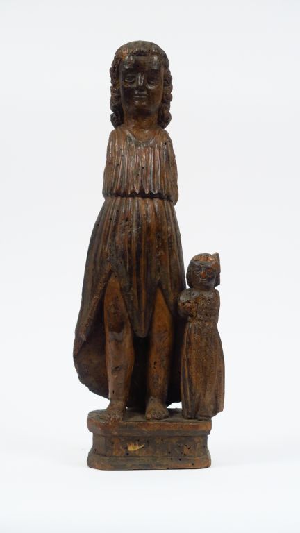 Sculpture XVIIème en bois naturel "St Joseph et l'enfant Jésus" H. 59 cm. (manques et accidents)