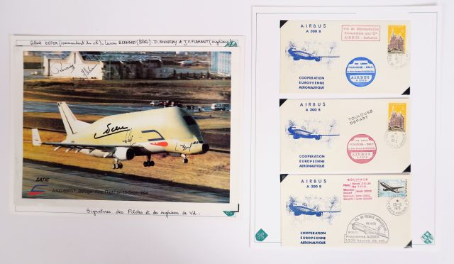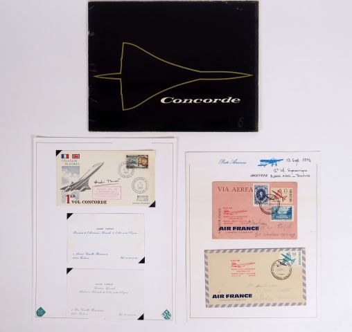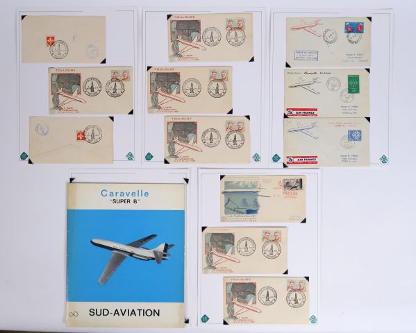 Série de documents, enveloppes et cartes postales concernant la Caravelle, Airbus ou le Concorde