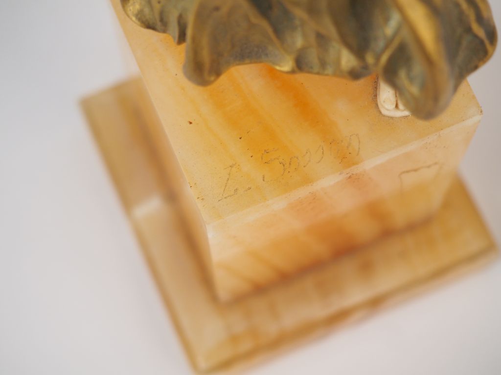 SOSSON. "Danseuse orientale" Sculpture Chryséléphantine, socle en onyx. Signée sur le socle. H. avec le socle : 26 cm