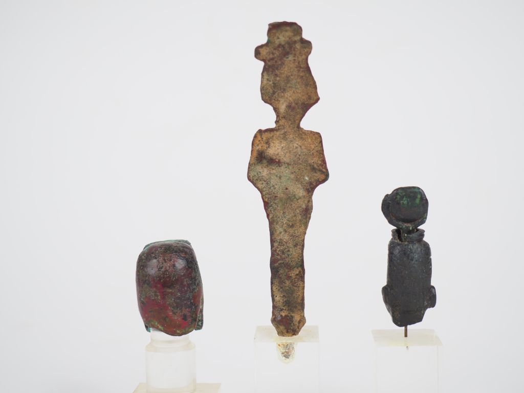 Statuette d’Osiris, buste d’Isis et tête d’Horus (?) en bronze. Egypte. Basse-Epoque. H. : 3.5 cm, 12 cm, 5.2 cm.