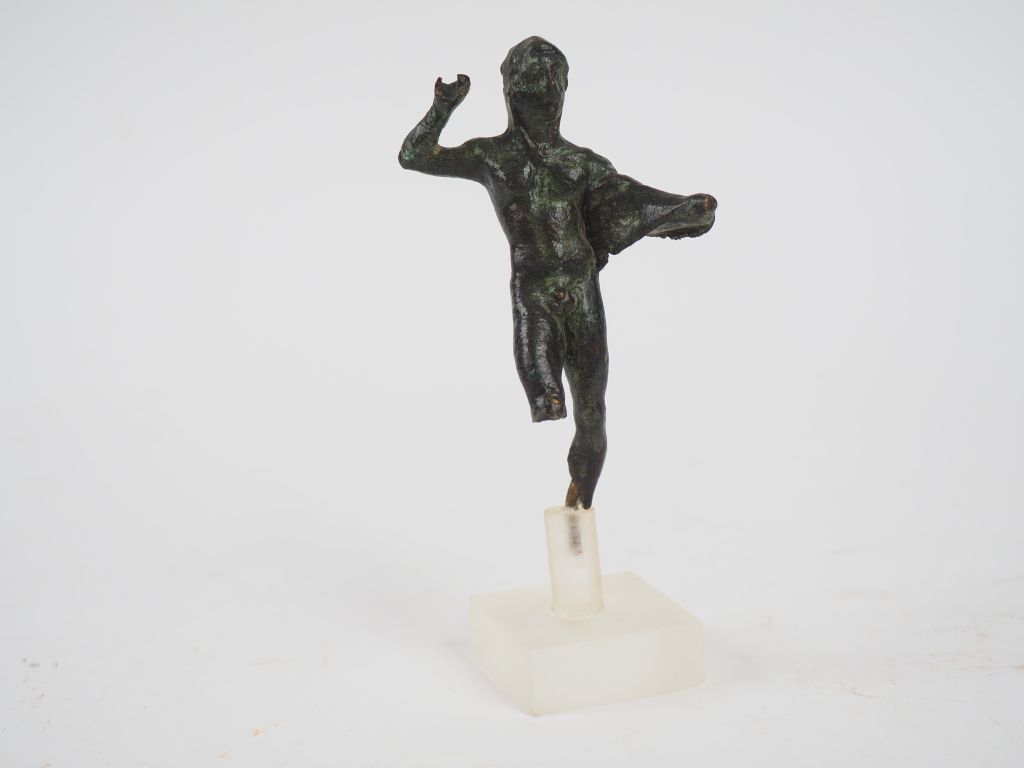 Statuette en bronze d’Héraclès/Hercule vêtu de la peau du lion de Némée. Période romaine. Manques visibles. H. : 11 cm.
