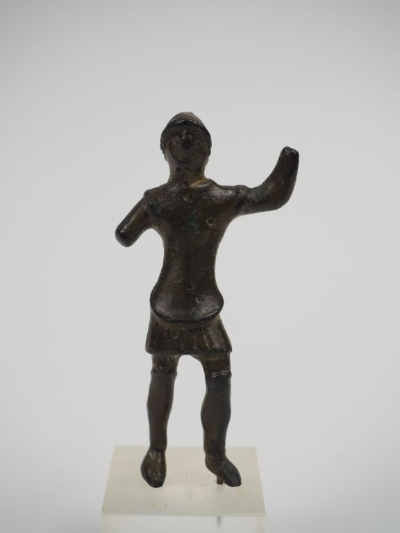 Statuette en bronze du dieu Mars cuirassé. Période étrusque (V-IIIe s. av. J.-C.). Un exemplaire assez proche au musée de Cortone. H. : 9 cm.