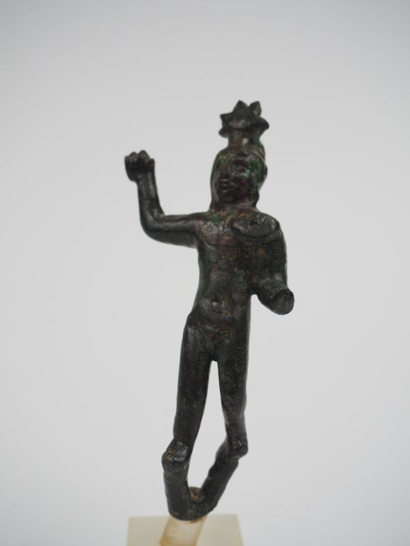 Statuette en bronze figurant un personnage nu coiffé d’une étoile. Période romaine. H. : 10.5 cm.
