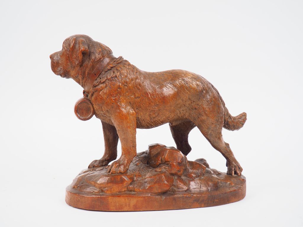 Sujet en bois sculpté XIXème "Le Saint-bernard" 31 x 34,5 x 18