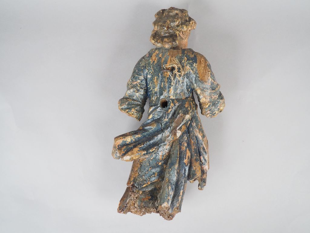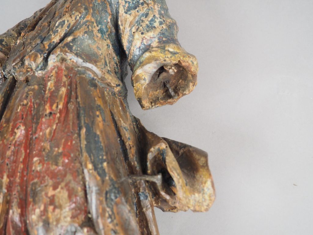 Sujet XVIIème en bois polychrome "Ange" H. 49 cm (manques)
