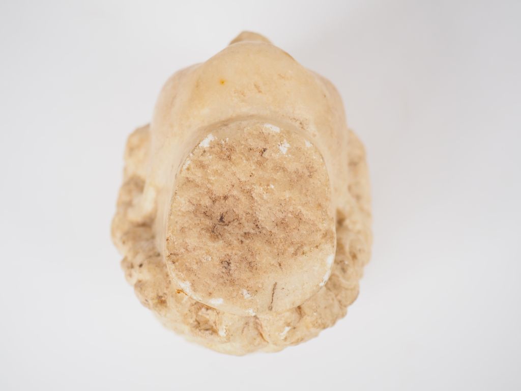 Tête d’homme en pierre. Antiquité tardive ? Marbre ? Dim. : 12 x 11 cm.