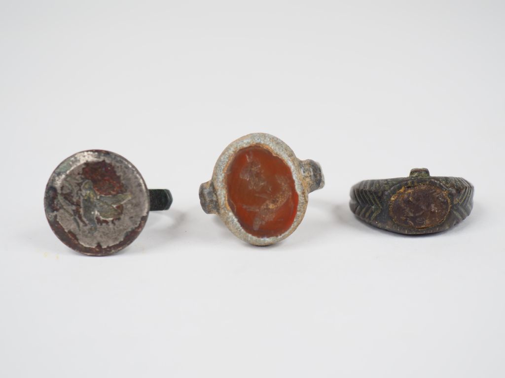Lot de Trois bagues avec intailles en cabochon. au prix de 50 à 80 € en vente aux enchères par l'hôtel des ventes Primardeco
