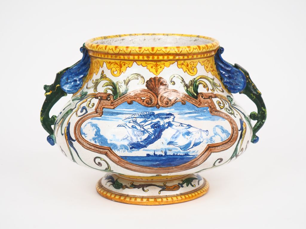 Ulysse BALON. Vase à anses en faience polychrome de Blois, décor de style Renaissance. H. 24 cm