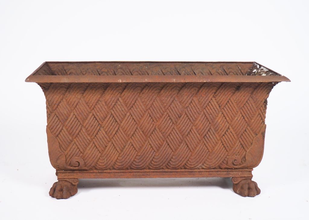 Une jardinière rectangulaire en fonte. Dim. 35 x 70 x 35 cm