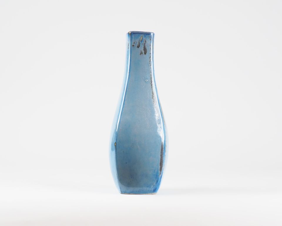 Vase 1900 en grès flammé, nuancé bleu. H. 34,5 cm.