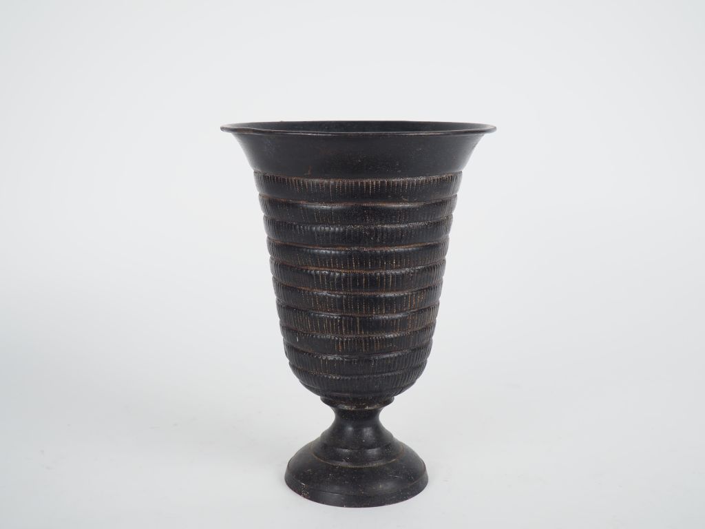Vase Médicis en tôle à patine brune décor de motifs géométriques. H. 26,5 cm