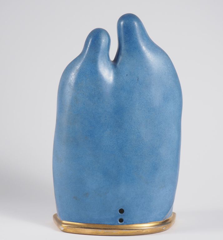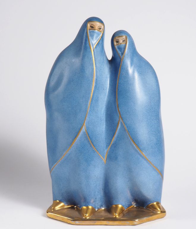 Veilleuse Art Déco en porcelaine polychrome de Limoges figurant deux fatmas. H. 24 cm